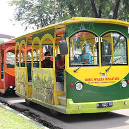 Mengingat luasnya yang mencapai 150 hektar, maka disediakanlah beragam alat transportasi umum untuk para pengunjung TMII seperti mobil keliling, sepeda listrik dan sepeda wisata.